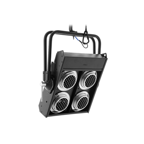 4 Circuit Par 36 Molefay units are commonly known as ‘audience blinders’. This 4 cell Molefay unit contains two circuits of Par 36 lamps. It is designed with ease of use in mind, they feature robust lightweight aluminium construction, semi-gloss black electrostatic paint finish, heavy duty yoke with positive lock off, which uses a tee bar to enable unit to be set at any desired angle. In addition, each lamp bank will slightly pan independently to alter light effect. The lamp change itself is straight forward and simple due to the manufacturer introducing quick release knobs on the lamp retaining ring which are chrome plated and are fitted with a safety mesh as standard to ensure the lamp will not move in transport or whilst being used.