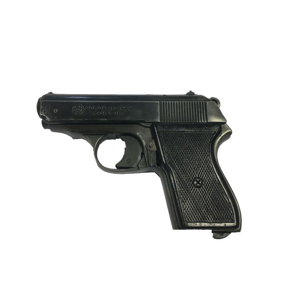 8mm Walther PPK Pistol – These guns are blank firing replicas and as such are unable to fire live ammunition. The muzzle of the guns are sealed so there is no danger from firing the gun toward a person. There is however, a discharge of gasses from around the chamber which could cause harm if the gun was to be used improperly