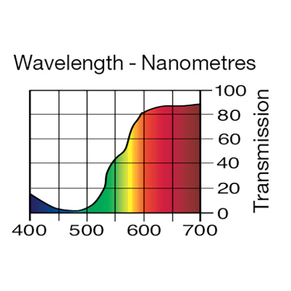 LEE Filters 020 Medium Amber is good for afternoon sunlight and candlelight effects. Also great when used as side lighting. Full sheet dimensions are 1.22m x 0.53m.