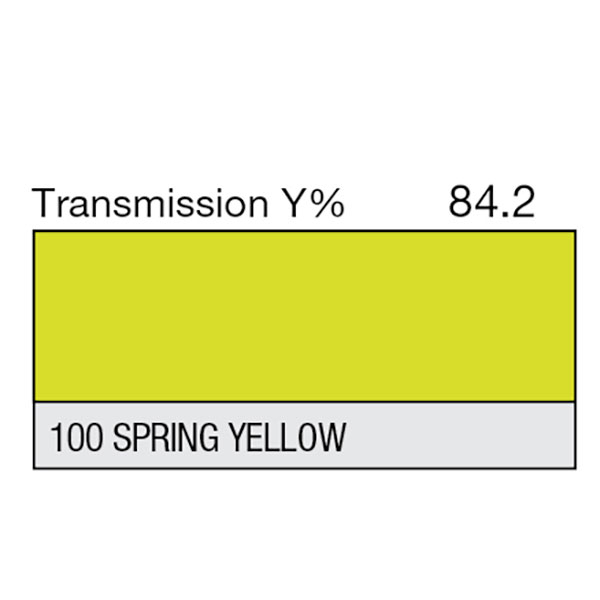 LEE 100 Spring Yellow is a sunlight wash – use with gobos, disco and dark skin tones. Full sheet dimensions are 1.22m x 0.53m.