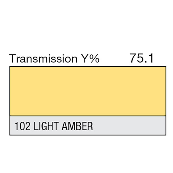 Lee 102 Light Amber is a warm yellow colour. Great for candlelight or warm bright sunlight effects. Full sheet dimensions are 1.22m x 0.53m.