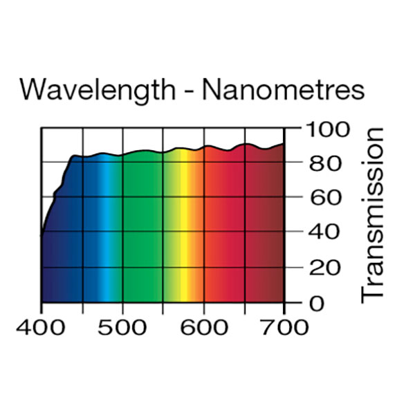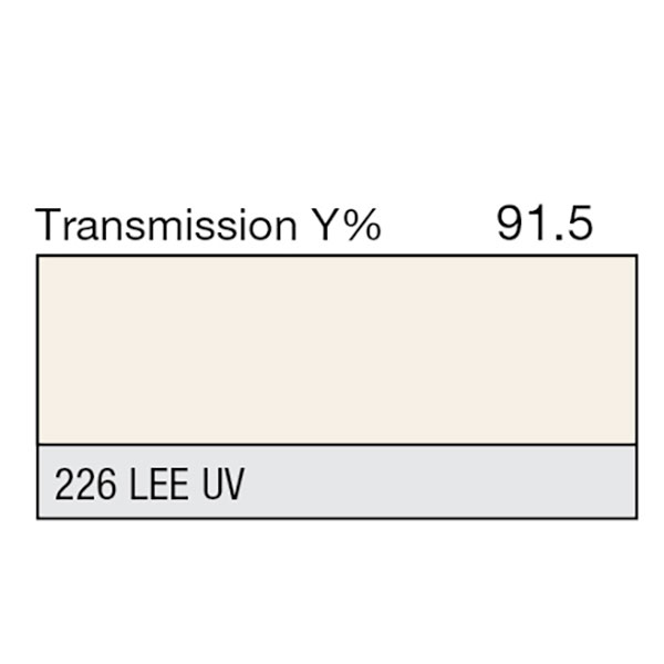 LEE 226 U.V. Filter Transmission of less than 50% at 410nms. Full sheet dimensions are 1.22m x 0.53m.