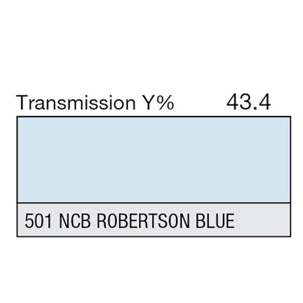LEE 501 New Colour Blue (Robertson Blue) An alternative to the CTB series with warmer tones and a lesser green cast for face and key light. Full sheet dimensions are 1.22m x 0.53m.