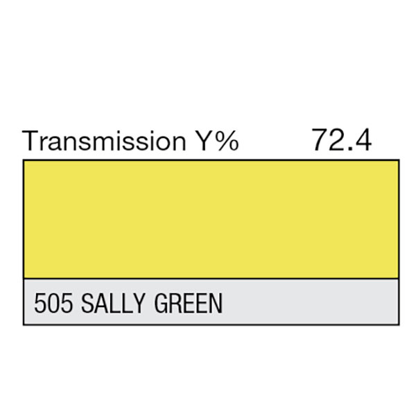 LEE 505 Sally Green A fresh, light and airy summer green. ‘Under tree canopy’ light quality without ‘pantomime countryside’. Full sheet dimensions are 1.22m x 0.53m.