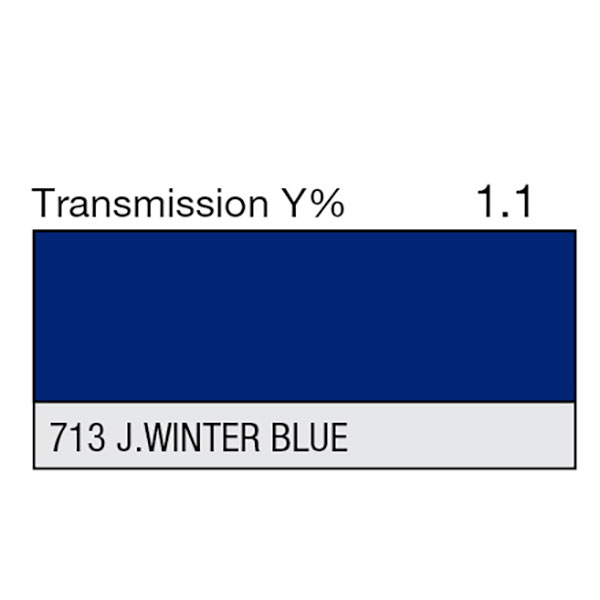 LEE 713 J.Winter Blue Very dark blue with high UV content. Good in high concentrations for a moody and powerful stage colour wash. Full sheet dimensions are 1.22m x 0.53m.